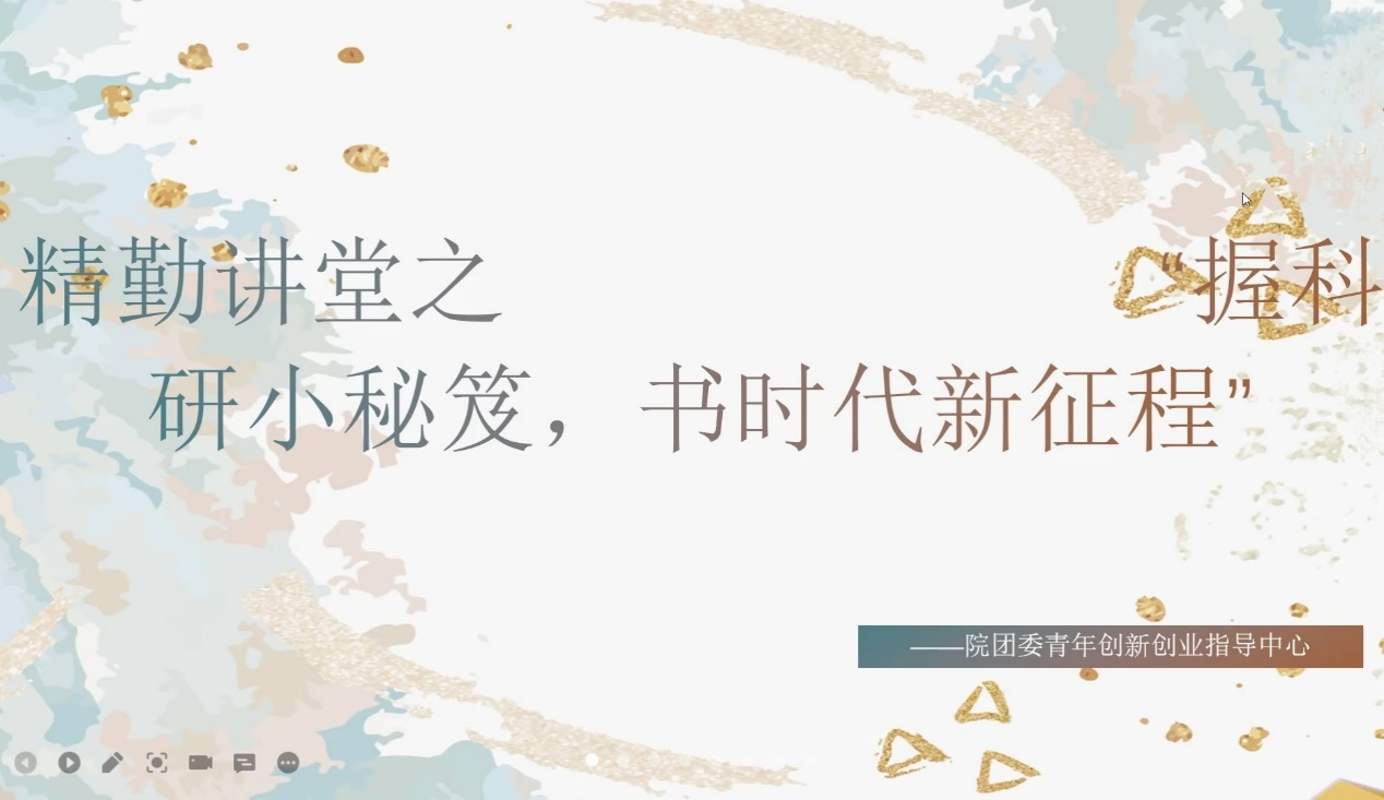 3月18日晚上,海洋之神hy590官网团委青年创新创业指导中心在腾讯会议线上开展“握科技小秘笈,书时代新征程”主题精勤讲堂。此次讲座由21级临床一班雷灵林主持,邀请到19级药学班刘恩泽主讲,海洋之神hy590官网部分本科生参加此次讲座。