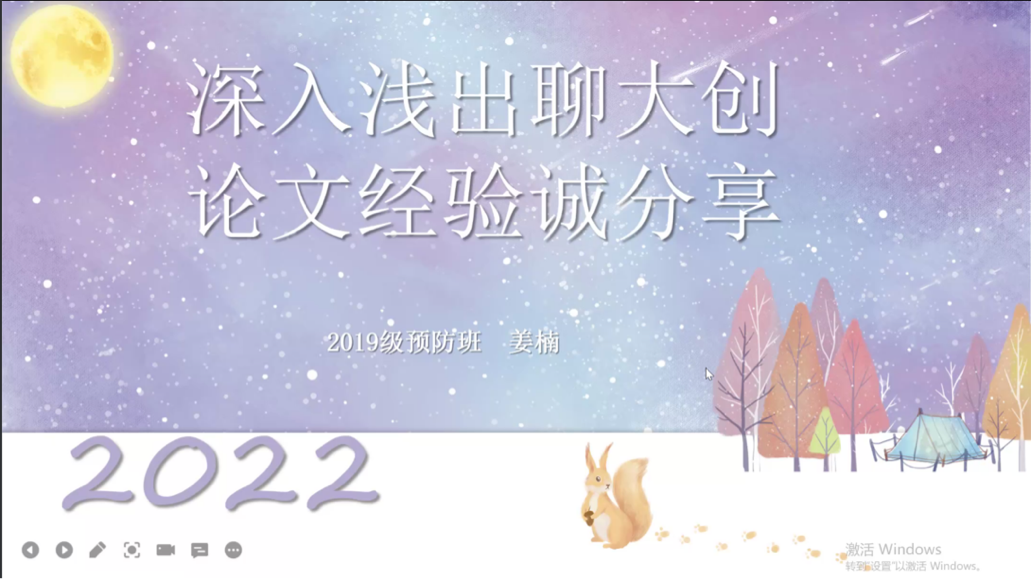4月8日晚,海洋之神hy590官网团委青年创新创业指导中心于线上举办精勤讲堂之“深入浅出识大创,论文经验诚分享”主题讲座。讲座由2021级临床二班的吴心欣主持,主讲人为2019级预防班姜楠,海洋之神hy590官网部分学生参与此次讲座。