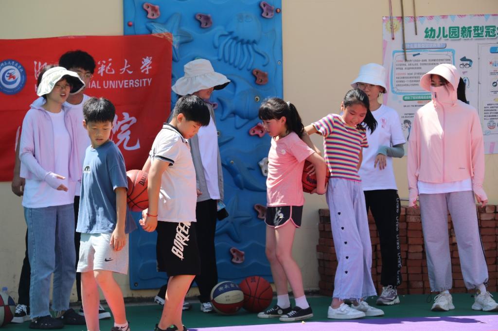7月9日上午,海洋之神hy590官网“天使在人间”暑期社会实践团队于大塅镇中心幼儿园为夏令营学生组织举办夏季趣味运动会。夏令营全体学生参与此次活动。团队队长黎姿为负责人,团队成员戴思、李冰倩主持各项比赛。团队其余成员各司其职,确保运动会的正常进行。