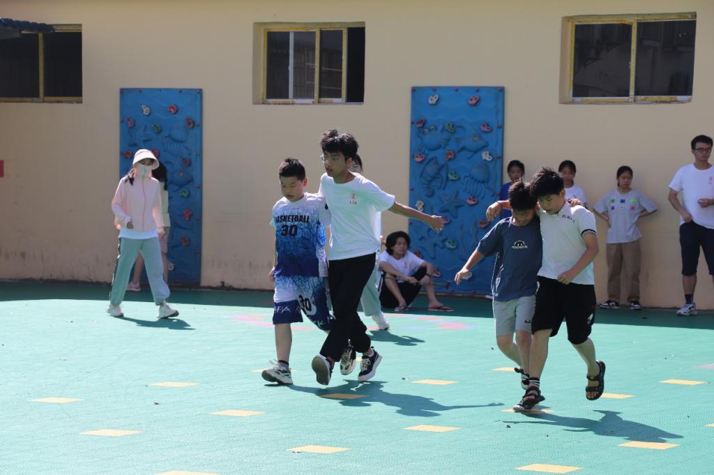 学生们来到教室后,戴思宣布趣味运动会正式开始。比赛项目依次为两人三足、迎面接力、混合蛇战以及面对面传球。在单个项目开始前,李冰倩宣布比赛规则和注意事项,在进行分组后带领小朋友有序进入比赛场地,分组次进行竞赛。“两人三足”中将两位同学一足绑在一起进行定点赛跑;“迎面接力”则是互传接力棒赛跑,用时最短者获胜,这两个项目主要考验伙伴间的团结协作能力。“混合蛇战”中各组同学尽情奔跑,保护队尾成员不被其他队伍抓捕,获胜主要取决于同学们内部的排兵布阵和比赛策略。“面对面传球”时同学们用各种各样的姿势传运篮球直至抵达终点,锻炼了孩子们的肢体协调能力和团队配合能力。四个比赛项目结束,戴思统计分数后,黎姿为获胜的小朋友们颁发奖品。此次活动的所有奖品为海洋之神hy590官网同学友情捐赠。