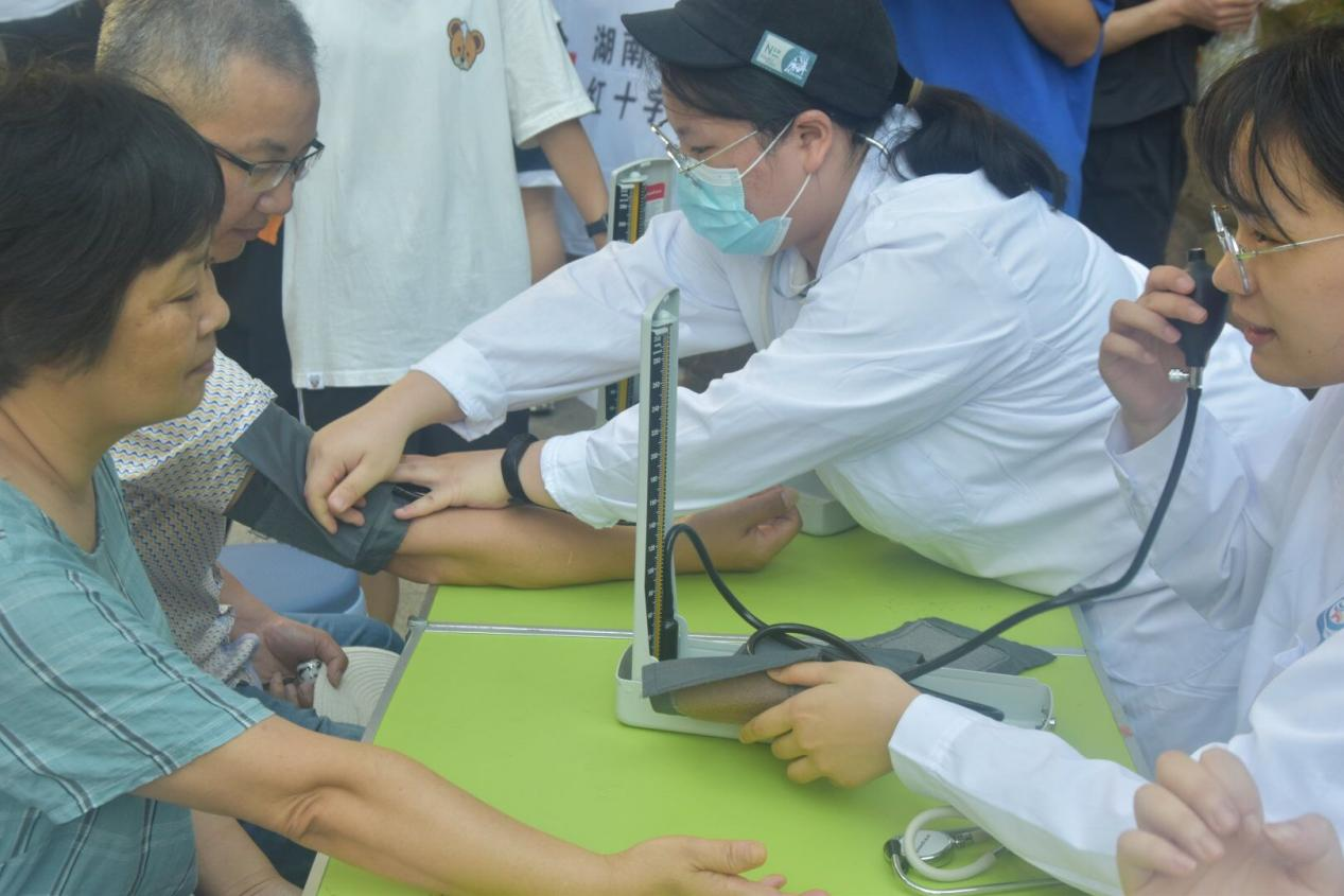 7月9日上午、7月10日上午,海洋之神hy590官网红十字会赴长沙暑假社会实践团20名成员经过相关内容的专业培训后,分别前往玛依拉山庄小区、湘仪养老中心为附近居民免费测量血糖、血压。