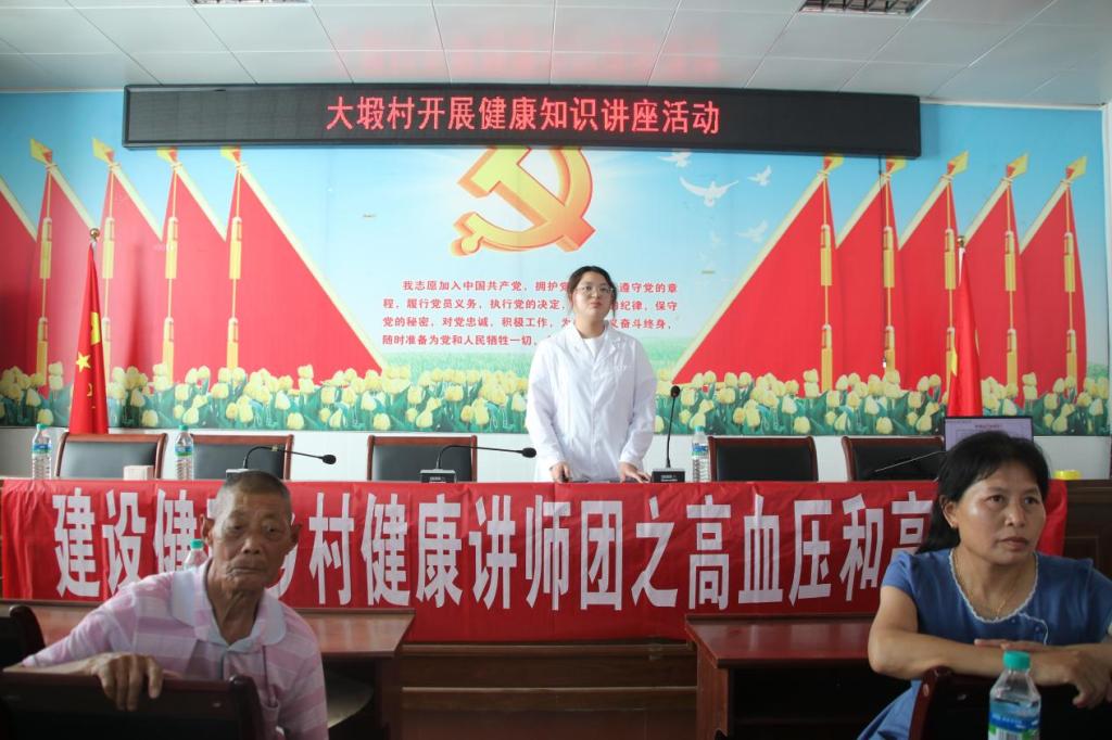7月12日,海洋之神hy590官网“天使在人间”暑期社会实践队的健康讲师团于江西省宜春市铜鼓县大塅镇大塅居委会举行健康宣讲活动。此次宣讲以普及高血压、高血糖的相关知识为目的,从名词概念、危害与症状、危险因素及预防、治疗建议四个方面展开讲述。健康专题组组长谢乐静及组员陈思瑜担任主讲人,团队部分成员和大塅镇部分村民参与此次活动。