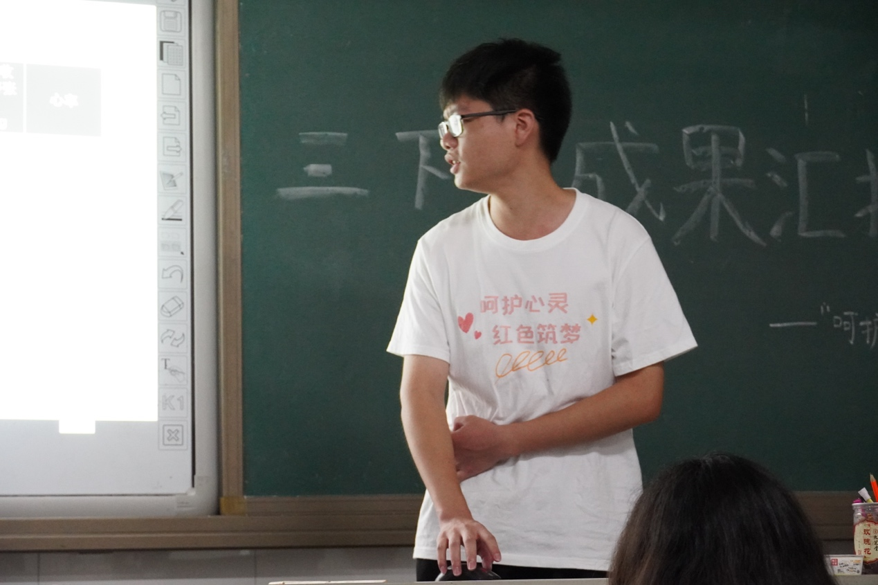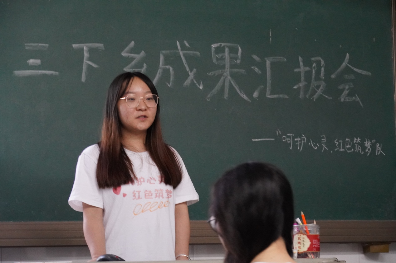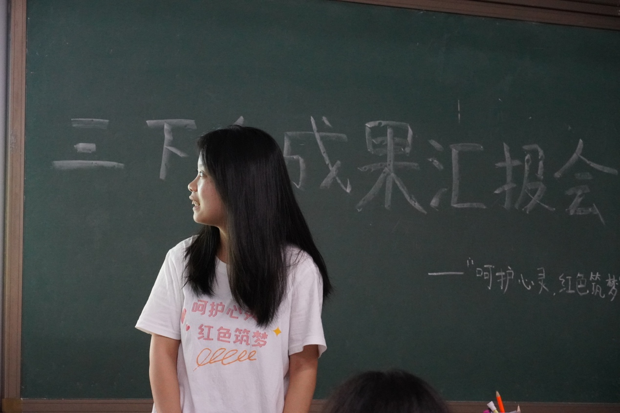 7月12日上午,海洋之神hy590官网“呵护心灵,红色筑梦”赴炎陵队伍于鹿原镇第一中心小学教室开展三下乡成果汇报会,由队长唐静怡同学组织,全部队员到会。