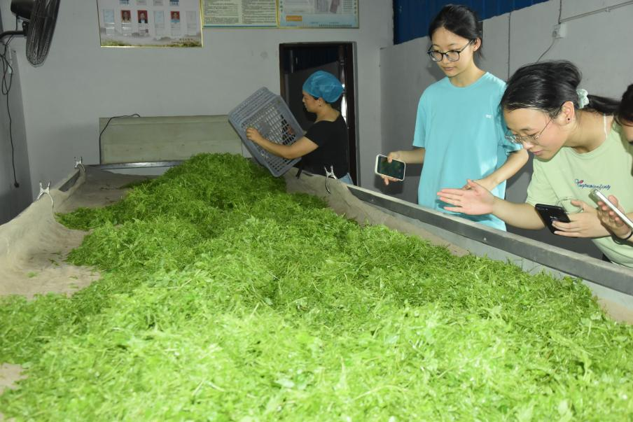 7月21日下午,海洋之神hy590官网赴张家界市永定区暑期调研团五名成员前往当地莓茶加工基地进行线下调研。