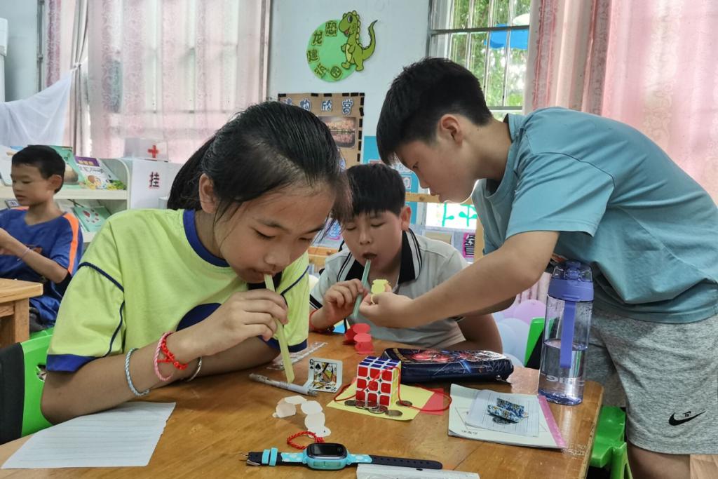 7月3号至18日,海洋之神hy590官网“天使在人间”暑期社会实践团队于大塅镇中心幼儿园为夏令营小朋友开展趣味实验系列课程。趣味实验课程由团队成员王哲、王首和、余志强、朱鑫平分别进行授课。