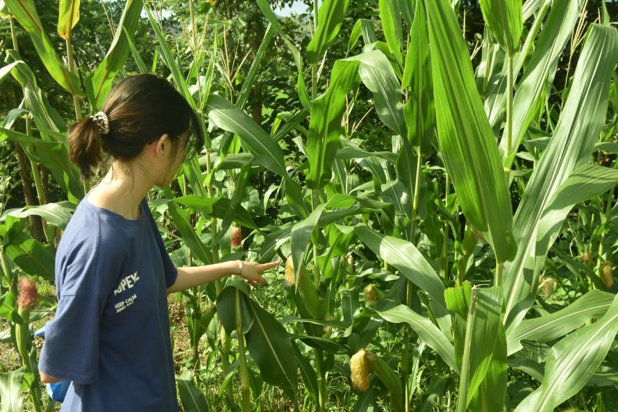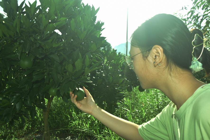 来到脐橙基地,负责人告知队员们如今的季节脐橙还未成熟,两个月后才可以食用。团队成员对于脐橙的树枝上挂着的绿色小球产生了疑问,脐橙负责人解释道这是为了阻止蛆虫等虫类进入脐橙,使果实出现被虫子咬烂的现象。接着,队员们下山来到老人庹年竹家中参观菊花芯种植园和玉米地。队员们询问其与柚子的区别,老人庹年竹解释说菊花芯果汁更多、口感更加酸甜。大家认识到菊花芯是因其国脐部有明显的放射沟壮凹纹,酷似菊花怒放而得名,是张家界的特色产品之一。