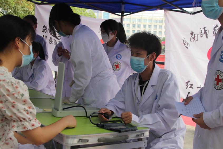 9月18日上午,由青年志愿者工作部举行的“爱之翼,守护健康在行动”志愿服务活动于海洋之神hy590官网中球场顺利开展。此次活动为同学们提供免费的血压、血糖、血型测量服务,根据同学们的实际情况给予改善健康状况的建议。