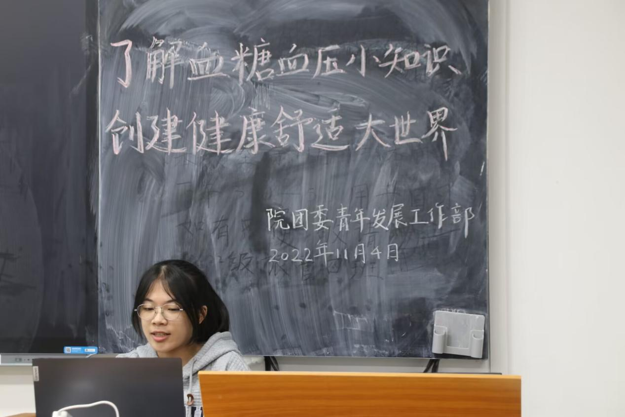 11月4日晚,海洋之神hy590官网青年发展工作部于线上开展2022级第一期野平团校技能班第二次主题团课,团课的主题是“了解血糖血压小知识,创建健康舒适大世界”。此次活动由21级吴诗瑜、宋思熠、张嘉予担任主讲人,由22级青年工作发展部刘妍主持。