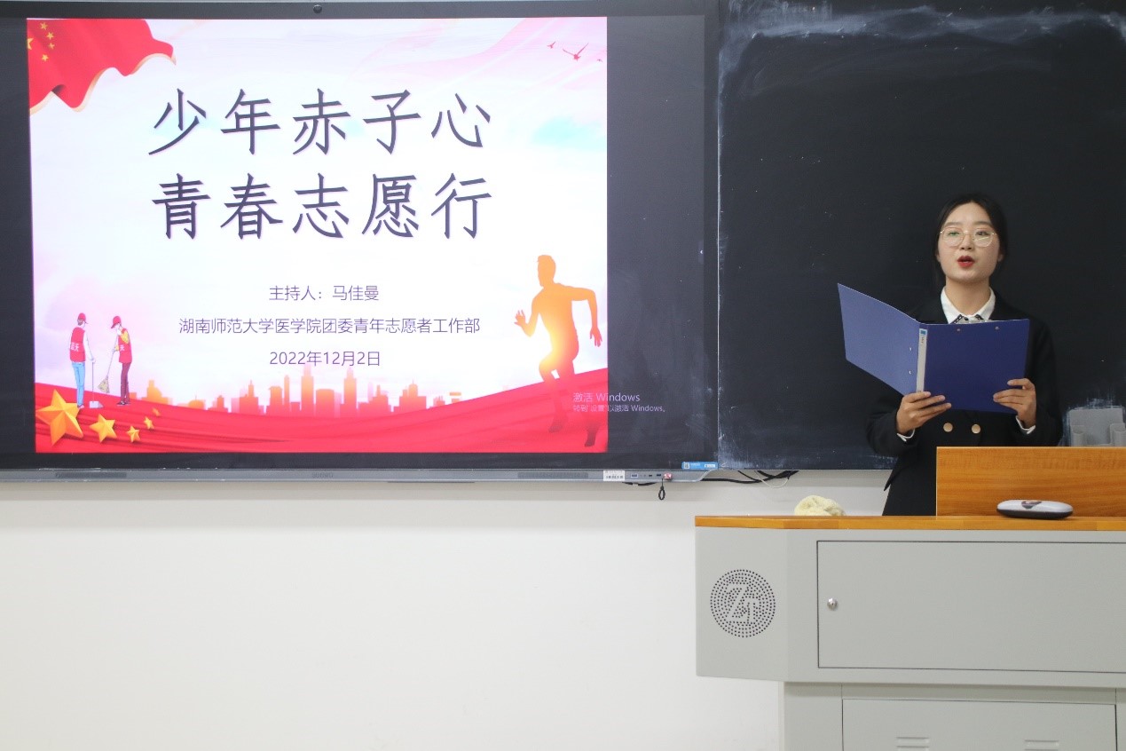 12月2日晚,海洋之神hy590官网“少年赤子心,青春志愿行”青志协宣讲会在综合楼402教室举行。2022级五年制辅导员朱天爱,星城火炬志愿服务联盟队长黎汉章出席此次活动。马佳曼担任主持人,青年志愿者协会全体成员参加。