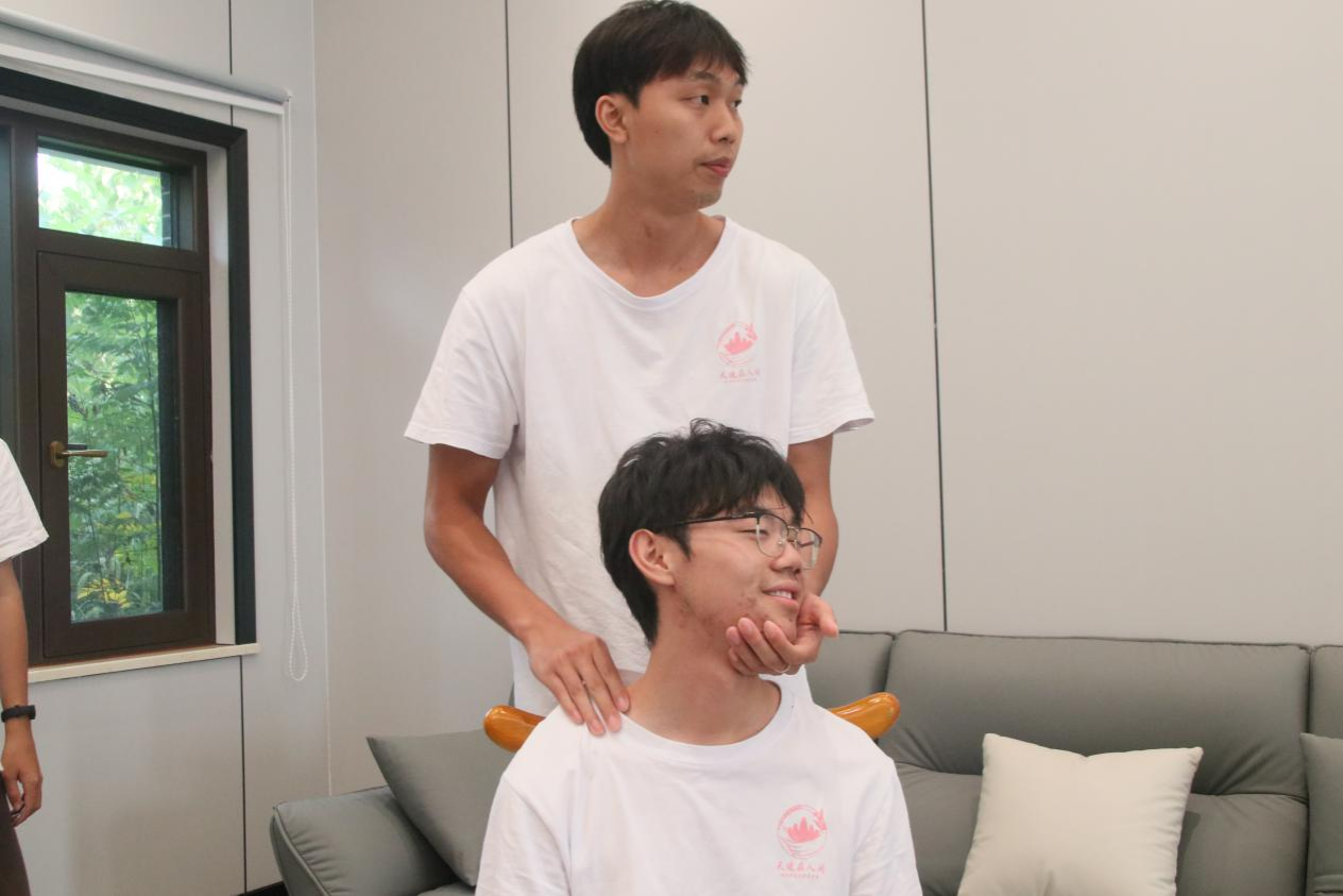 此次培训内容紧紧围绕着当下基层医疗卫生的实际需求。主要为血压、血糖的测量,血型的测定和推拿。陈兰兰通过实际的演示和讲解,为在场的队员们详细介绍了测量血压、血糖以及测定血型的基本原理,展示了血压计、血糖仪、采血针等医疗器械的规范操作以及使用要点。同时,她还指出,参加培训的队员应该在测量前询问被测人员相关问题,如在测量前是否吃过甜食、是否参加剧烈运动等,以确保测量结果的可靠性。在队员们进行实操时,陈兰兰在一旁耐心指导,及时纠正他们在操作中的错误,确保每一名队员的操作步骤严格遵守标准化流程,熟练掌握测量测定方法。
