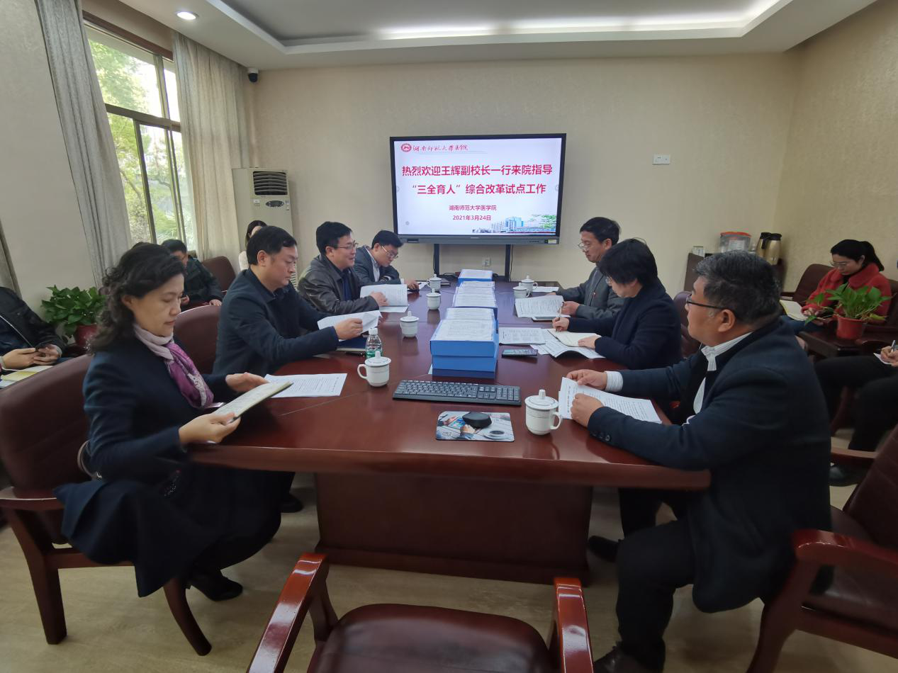 3月24日上午,副校长王辉到海洋之神hy590官网调研“三全育人”综合改革试点工作,会议由学生工作部部长向发意主持。